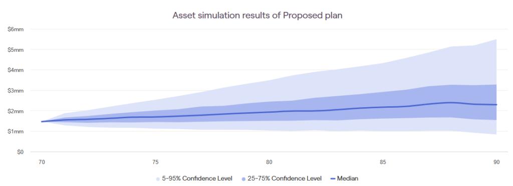 Once you have a plan, you can see how successful it is without giving money to your kids or grandkids. If it looks successful, then you can layer in different amounts of giving to see how it changes. You can look at the probability of success, ranges in wealth, and how much less you might have at the end of life.